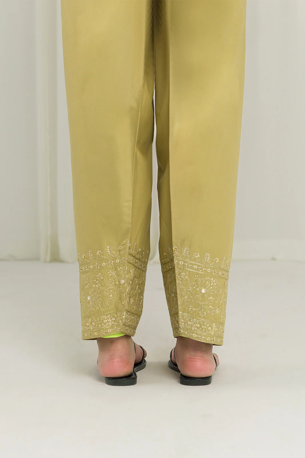 Beige cambric embroidered shalwar detailed with mirror work & sequences.